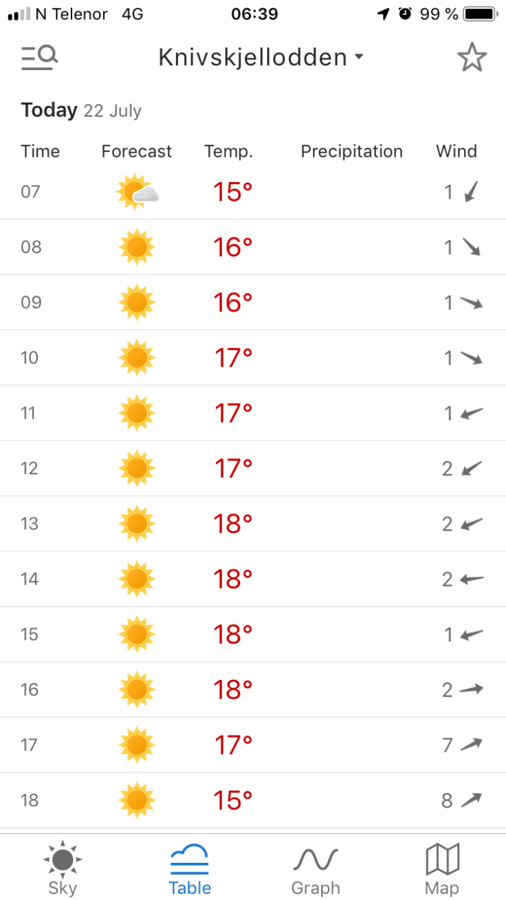 And the weather was almost as forecast, only better. Less wind, more sun and warmer than forecast. Might well have been the best day of summer round here. Our good “weather luck” has not left us.