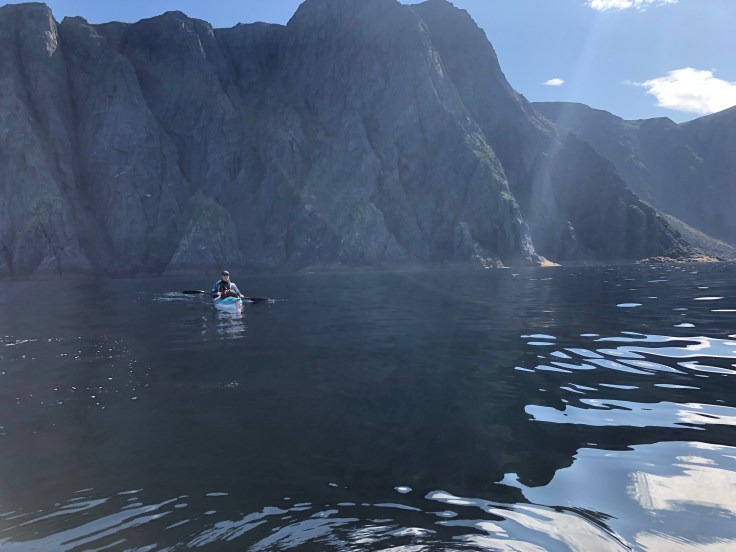Y2D3 Monday 22 July. We left Helnes Fyr at 0810 and arrived at Gjesvær 1705. 41 km, 5.8 km/hr average speed.
