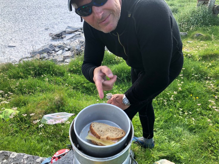 On our short visit Per fired up the stove and produced cheese sandwiches.