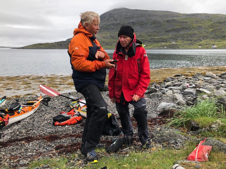 This Christoph was a French doctor working for the moutain rescue in the alps. Soon he and Stein were discussing the details of Garmin InReach. Good thing about a trip like ours is that the people we meet have interesting stories to tell. Christoph and crew had hoped to go to Svalbard, but got delayed and now their goal was Nordkapp.
