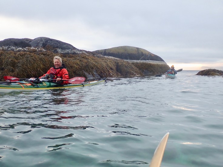 We decided to give it a try and see what we could do, but obviously no need to hurry. It was 1930 when we paddled out Komagfjord and straight into headwinds. We had slowish progress and some waves to handle across to Storekorsnes.