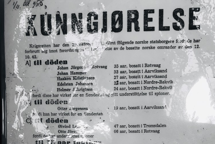 It turned out Kåre was a retired teacher with a keen interest in local history. In particular what is known as the “Arnøy tragedy”. The tragedy occurred in August 1943 when 11 people were killed or executed by the Germans for assisting two Red Army partisans that were at Arnøy to report on German shipping activity to Kirkenes.