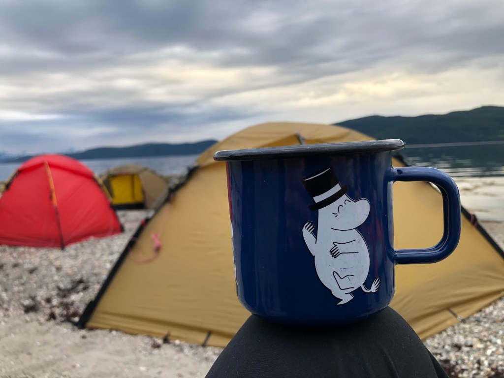 As planned we started to break camp just after 0500. The cargo hadn’t shrunk as much as hoped so packing took a bit longer than expected. Still we were happy for a 0745 start and set off for Gibostad. A place featured in a novel by Knut Hamsun (…no we couldn’t remember which one). Anyway at about 15 km a good place for a break. Maybe some shopping? A café?