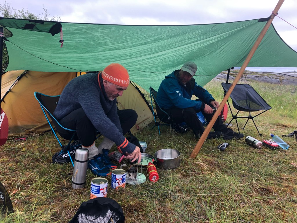 We found ourselves a nice beach at Femris. It was still raining, but Stein the “tarp master “ set things up so we had an early and comfortable dinner.