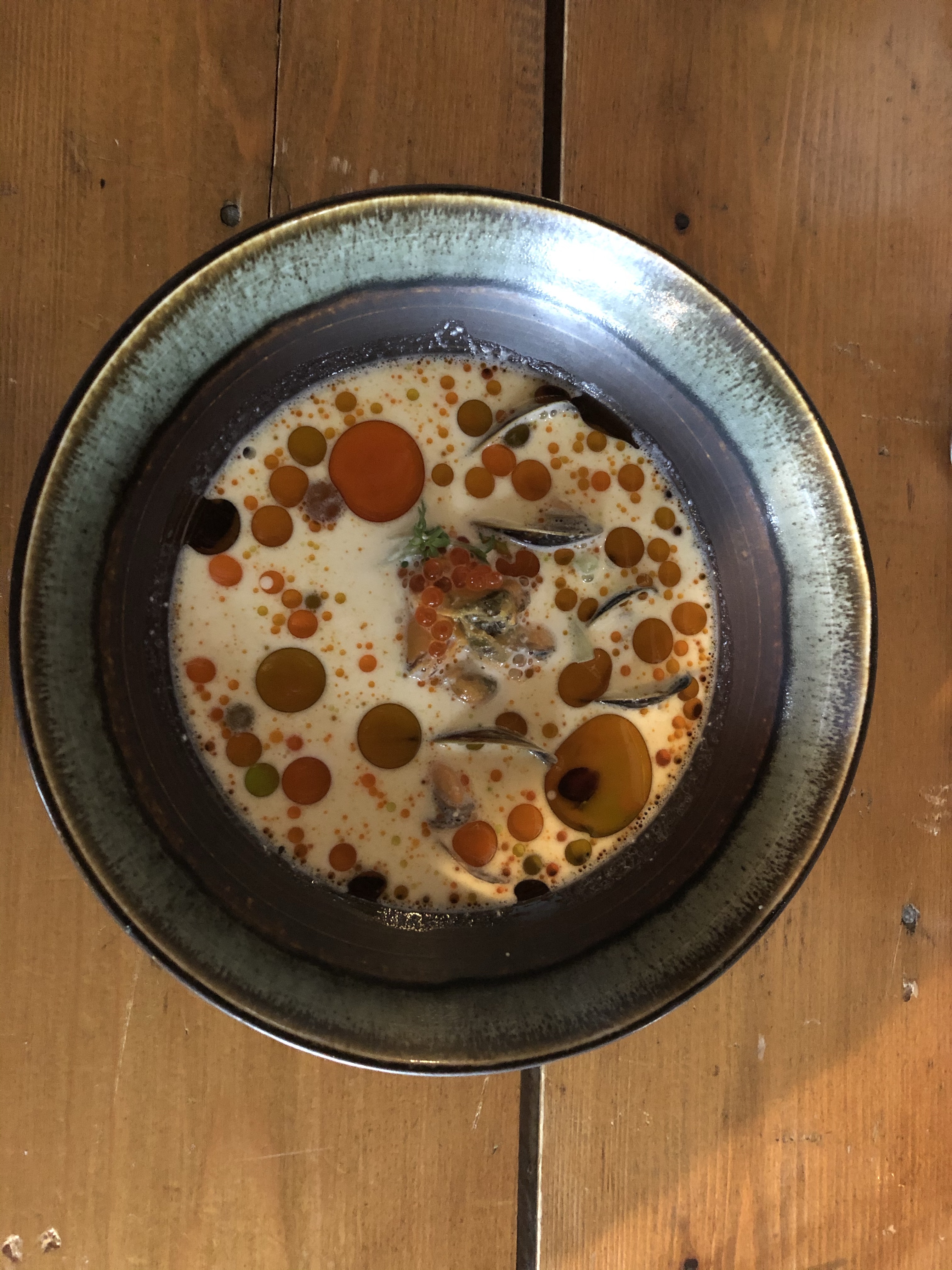 A meal worthy of the best restaurant and that is not something we say because we had paddled 45 km to sharpen our appetite. We held back the urge to swallow each course in one gulp and tried to take the time the meal deserved.