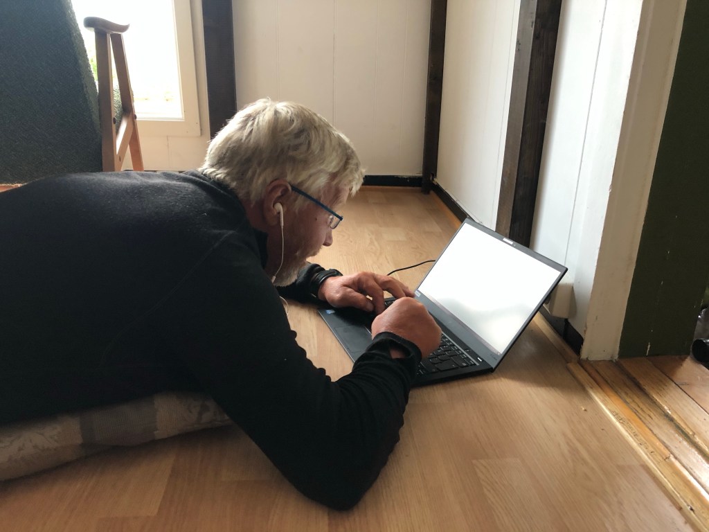Stein also did some office work, because of some charging issues he used an innovative ergonomic solution