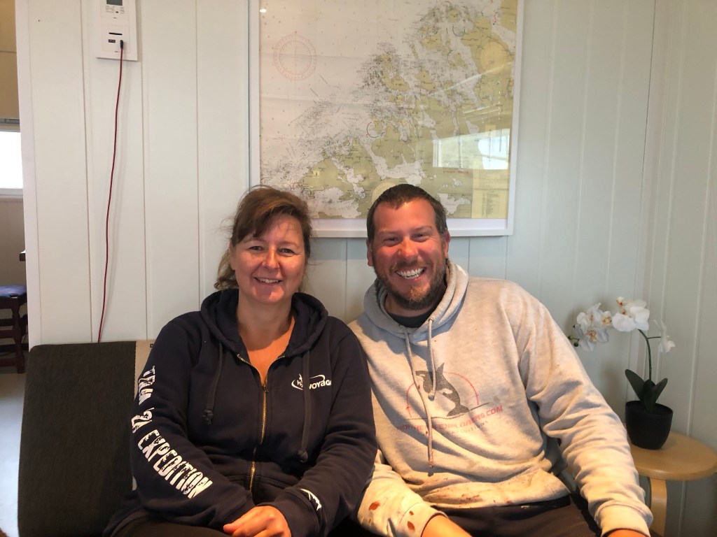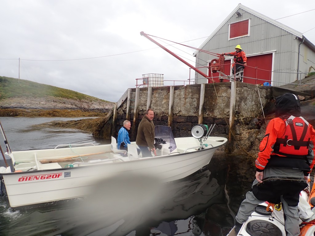 The odds turned out to be excellent. Soon we got an sms: Keys are on their way. And not long after we saw a boat approaching. Sure enough the boat carried Rune (Hansen) boat owner and Magnar (Sæter) holder of keys.