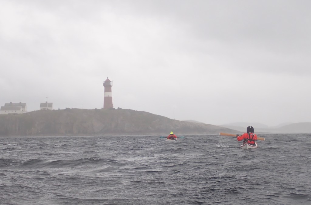 As we paddled the exposed part outside Oksbåsheia the wind picked up and we also paddled through 1.5 m ocean swell. At the top of the swell we could see land and the top of the lighthouse, at the base nothing but a wall of water.