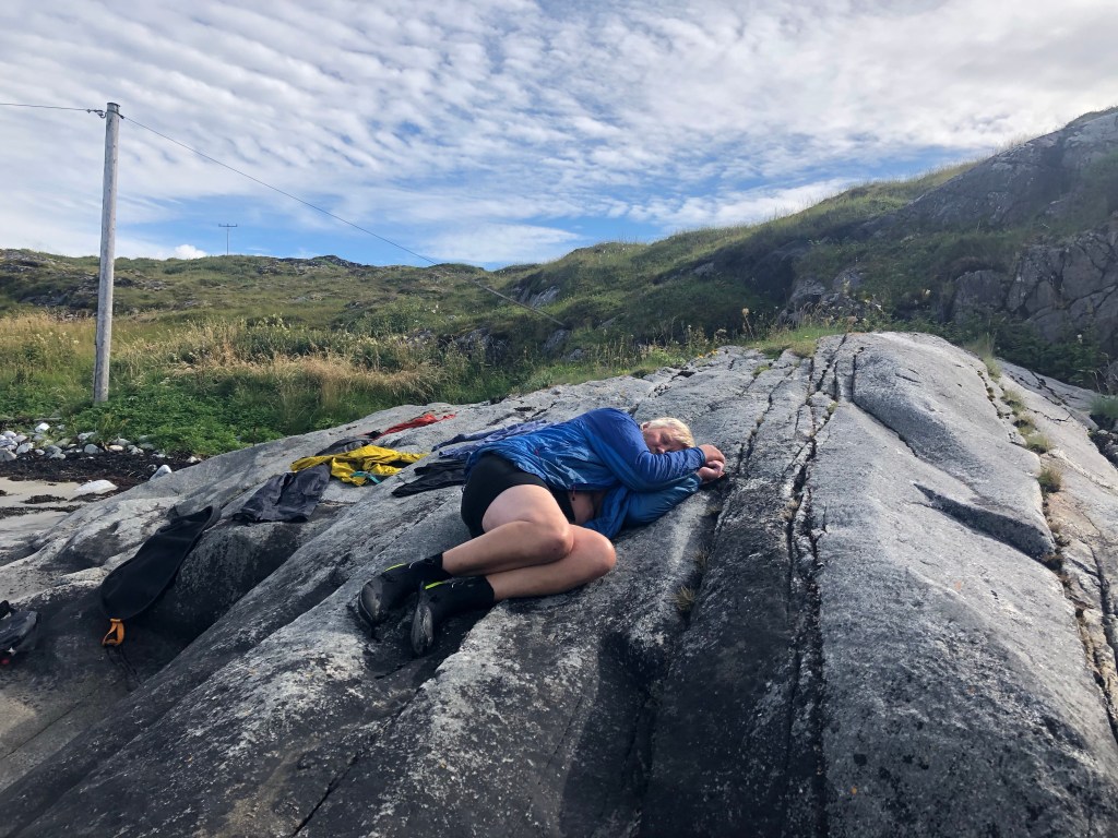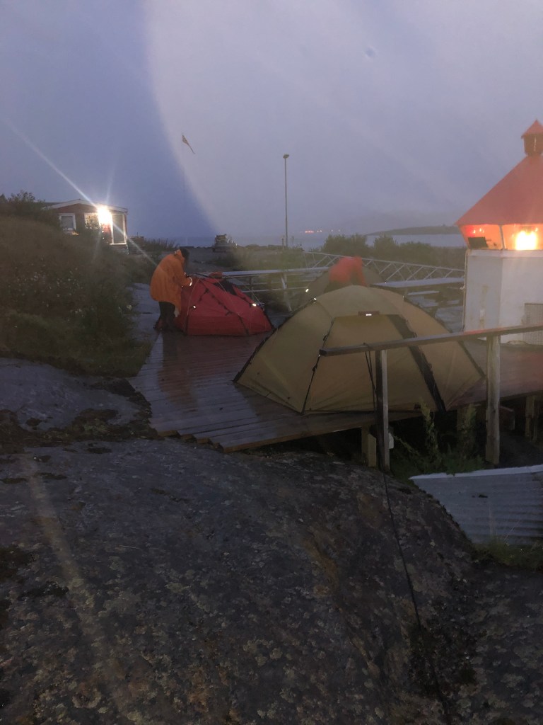 And just as we sat down to eat the rain started to pour down. As we ducked into the tents in the rain around midnight, we decided to make a minimum stop out of Stokkøya. Tomorrow we plan a 46 km paddle to Grandholmen just outside Storfodna. WP.