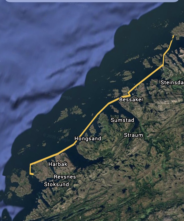 Wednesday 5 August. 51 km, 5.2 average speed. Buholmråsa fyr to Stokkøya marina. A long hard slog. Fall winds hampered progress. Start 0815 arrive 2130