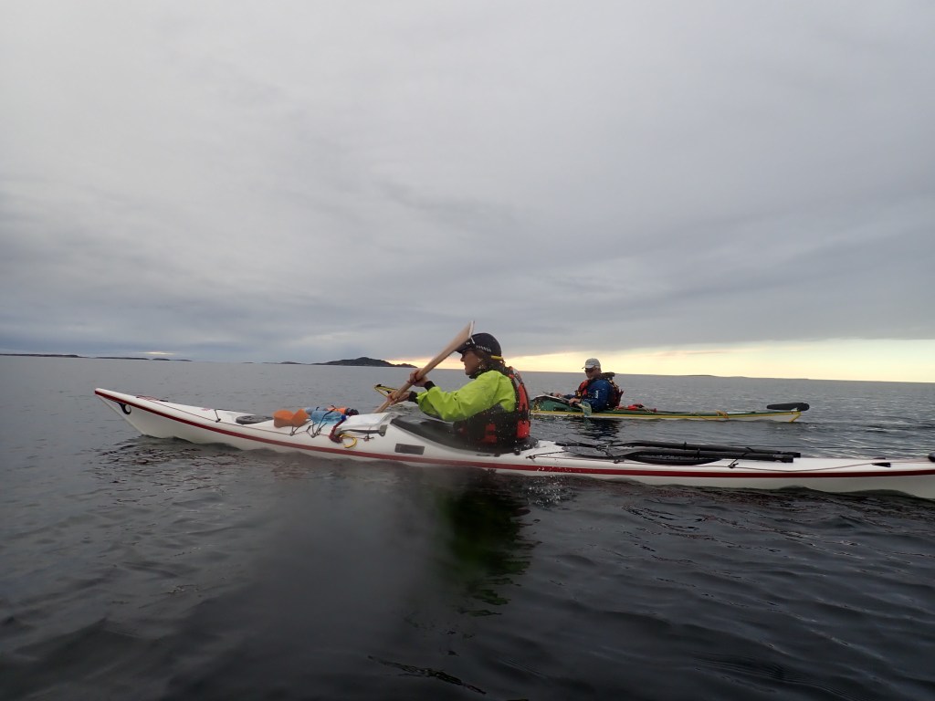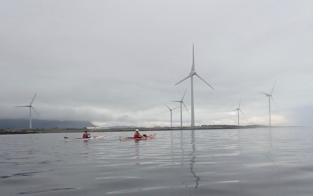So lots of open water, and not a lot to write about. Just one reflection. We realized that the whole three weeks we have probably not paddled a single meter without line of sight to a fish farm. They are littered all over. The last couple of days we haven’t paddled a meter without line of sight to windmills either. It’s massive things, it seems the economic fundament of these societies are changing before our eyes.
