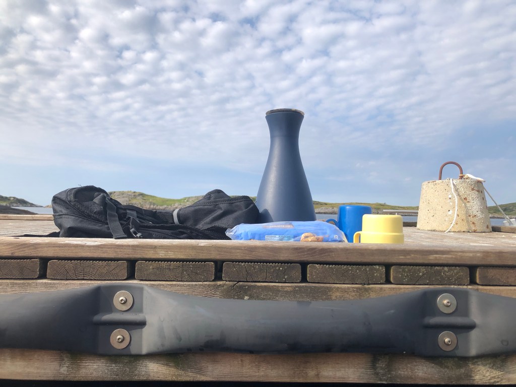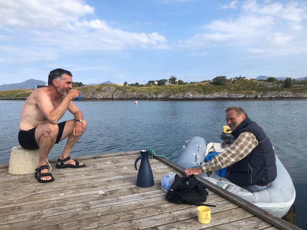 Just before we arrived and SMS from Ståle ticked in “did you find coffee at the quay”. We sped up. And yes there was coffee at the quay and chocolate biscuits. Almost magic. But we knew the explanation Ståle’s friend and neighbor at Soløya, Guttorm Heggstad was the main suspect, but he was nowhere to be seen. We came in a bit after plan so he probably was busy elsewhere.