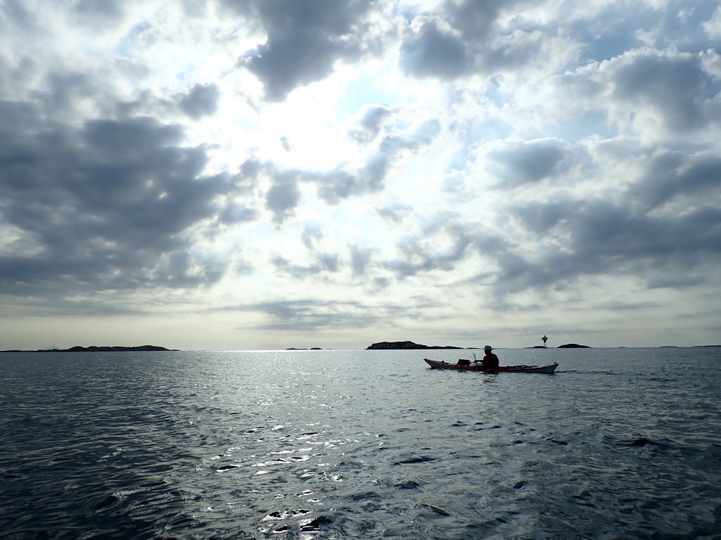 Our metrological luck continued (as forecast), the wind subsided and we paddled along Hustadvika in sun and flat water.