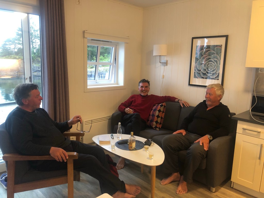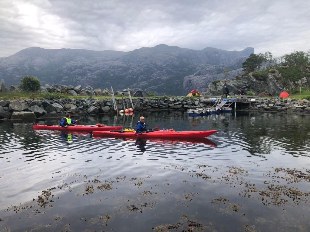 Helge and Torbjørn showed themselves to be super efficient at having breakfast and breaking camp. We were still finishing our pre breakfast coffee when they paddled off back toward Måløy.