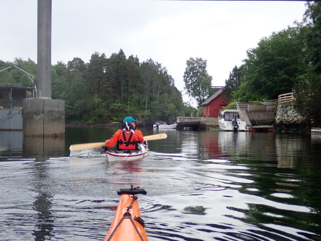 But without too much delay we turned past Ankerløkken Yard and paddled through the narrow strait/canal that runs north south through Florø. The a left turn and a short paddle to Florø rorbuer where we have booked for the night. Just as we pulled in it started raining. We were happy for our choice of accommodation.