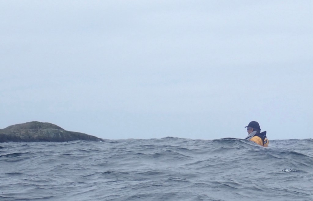 We showed adequate patience and by 1900 when we strarted crossing Sognesjøen conditions were good. We got across and had just a short two hours left to the nights destination. Mjømna kystcamp. We got a bit delayed as some of the small straits between the islets were almost closed off by huge salmon farms. We can hardly paddle a meter around here without line of sight to a salmon farm.