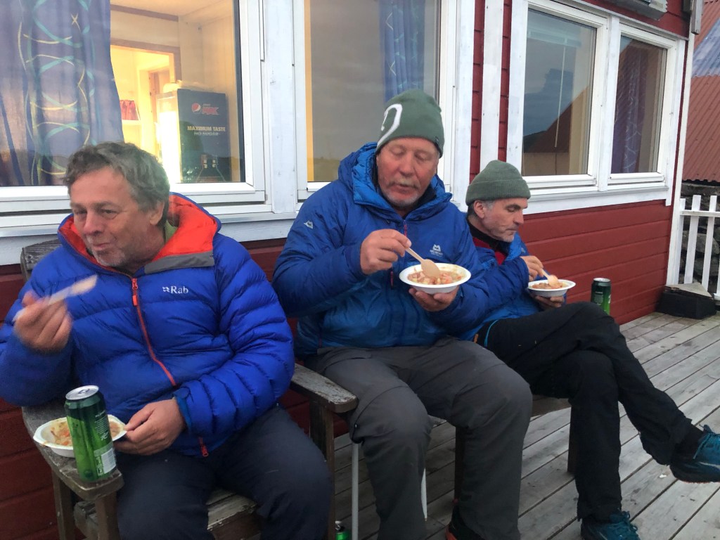 A few minutes later we were all in Arne’s camp; with warm dry clothes on, the tents up and a having met with the super hospitable four siblings with partners who had built this place up over the last years, we were ready to enjoy the evening and the company. And not least the very tasty stew (lapskaus) that would be served until 2400.