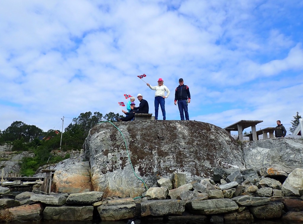 We somehow managed to be on the water at 1120. And we left in style as the Mjømnen family who runs the place came down to see us off in super fashion.