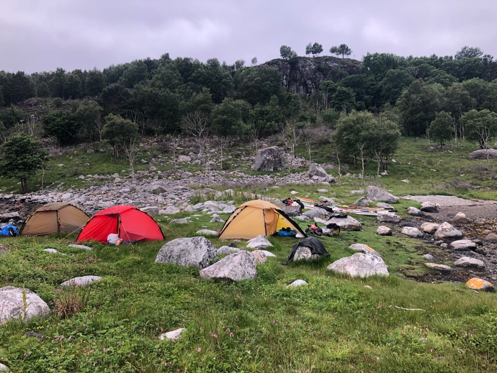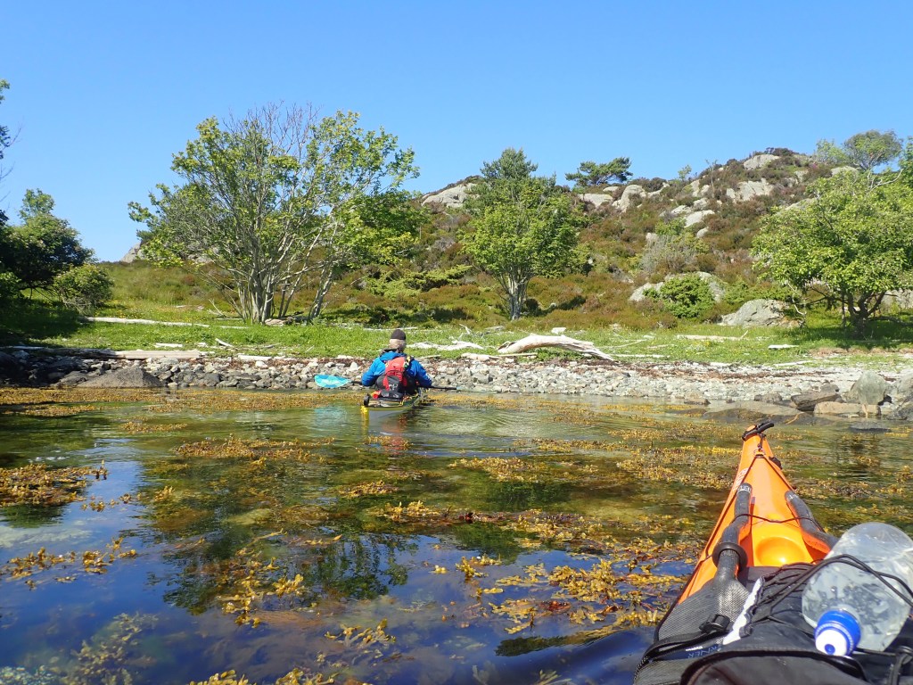 We had a leisurely start to the day and didn’t paddle off until 1140. It was still overcast when we set out, but soon the sun shone through and we decided to make a short first leg to Klokkarvik to adjust clothing lest we melted away.