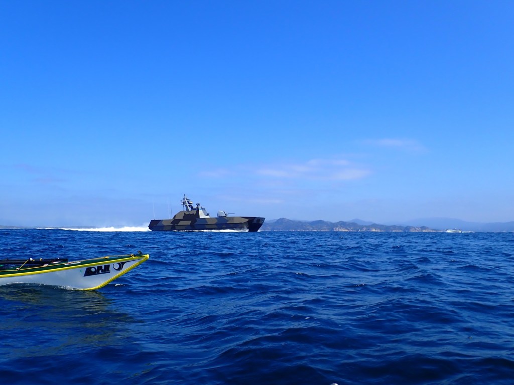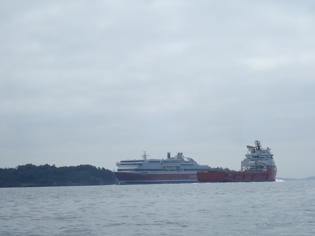 It was very busy with ship traffic across the fjord, we paddled in close formation and with good speed. But not as god speed as one of the Norwegian Navy’s coastal frigates that blasted by, but gave us good berth.