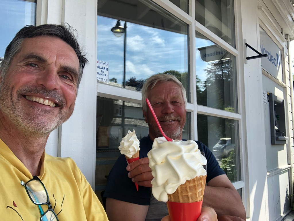 Tomorrow (Thursday) we aim for Mosterhavn or a bit longer. WP. The weather forecast for the next few days is very encouraging and we hope to make it to Sokn camping outside Stavanger by Saturday afternoon. That will take three +/- 40 km days. Weather and energy permitting. At least we have fuelled up here in Bekkjarvik!