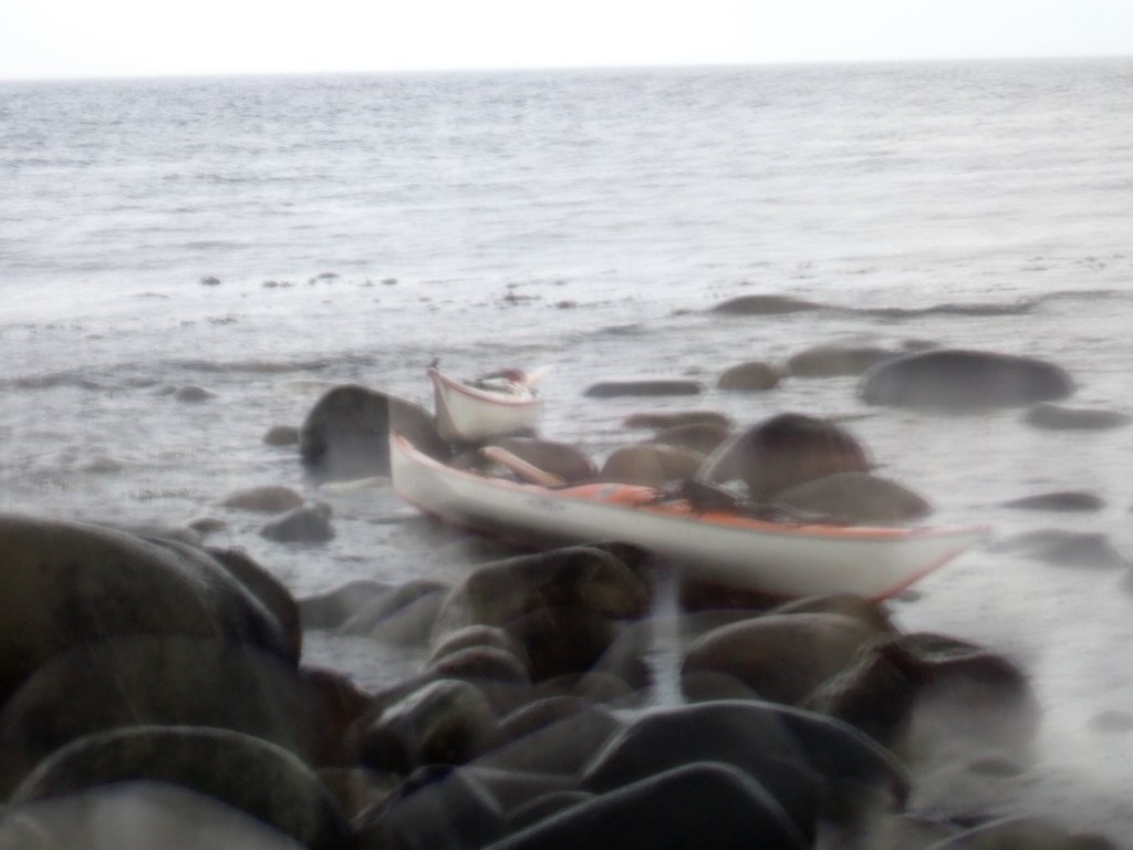The early afternoon arrived early and before we got to our first break we had pouring rain and headwinds. A lot of positives can be said about Jæren, but a paddlers paradise it is not. Amongst other issues it can be difficult to find a place to land the kayaks. In the end for the first break we left them out on some rocks a bit from shore…