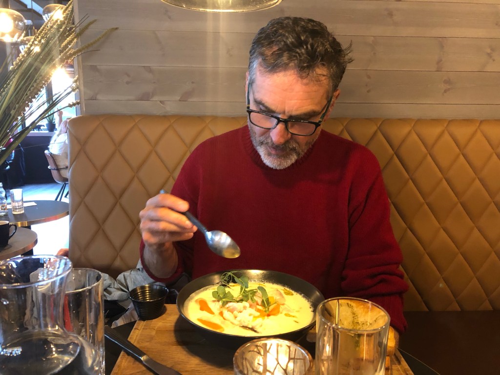 In stead we went to soaking wet Egersund to do some shopping and have lunch. “Biblioteket “ restaurant at Torget in Egersund comes highly recommended for their fish soup.
