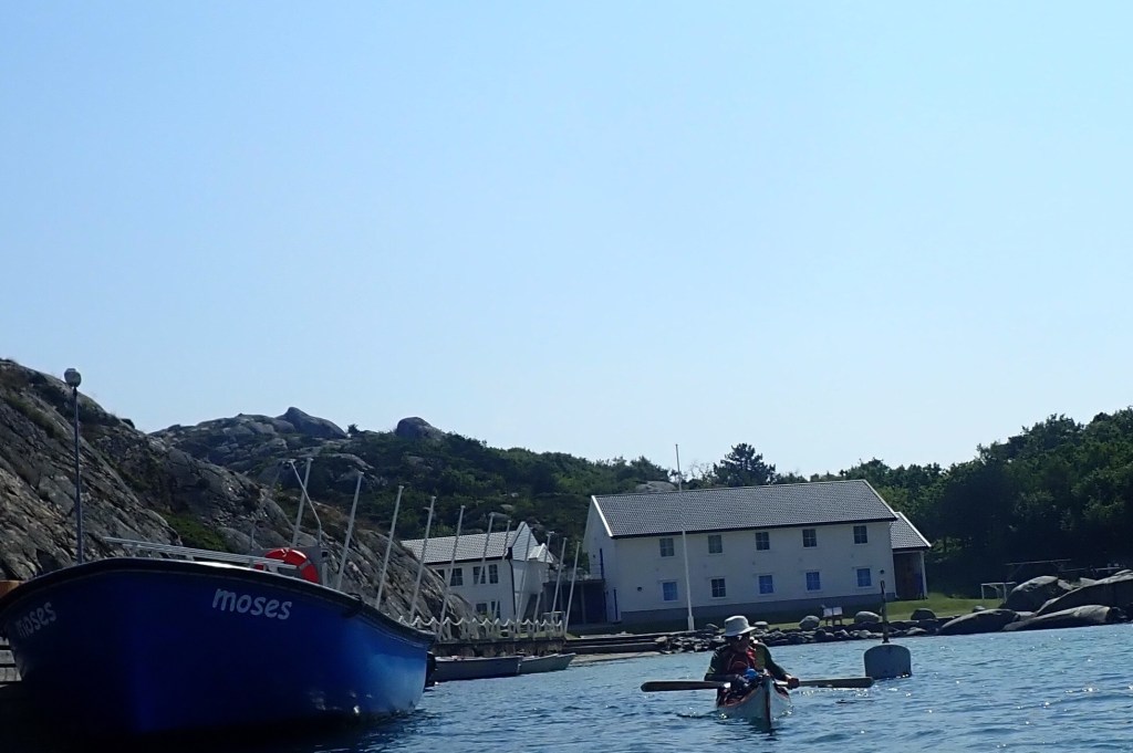 We got to Ulvøysund after about 3 hrs paddling. We were looking for a place for a long break to wait out the wind. Not so easy. This is a very private part of the Norwegian coast. But we were in luck. We found the Norwegian Missionary Society’s called Havglimt. A huge and well kept place that can house more than 70 people. We were welcome to use the lawn for a break