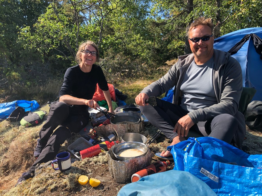 It was a really nice spot to camp at Bergskär, but some of us had just put the tents right on the bedrock without any pegs. We came to regret that about five in the morning when the wind really picked up: one the one hand it was definitely a good idea to go out and check on the gear, on the other hand the only thing that kept the tent in place was the weight of the inhabitant.