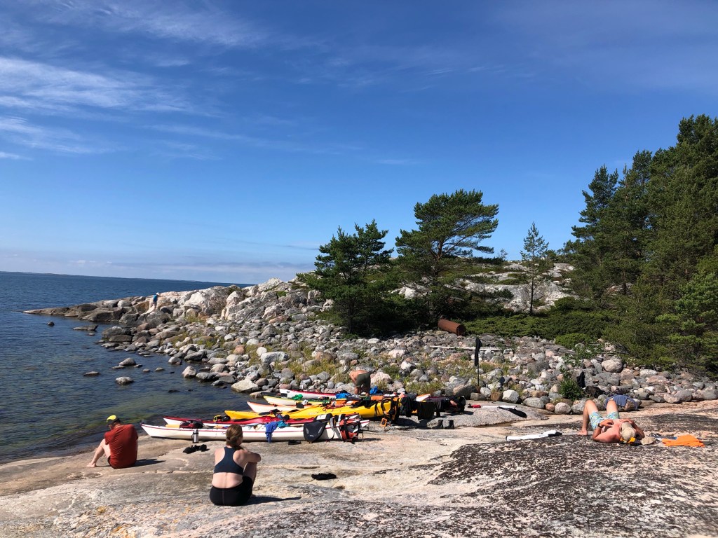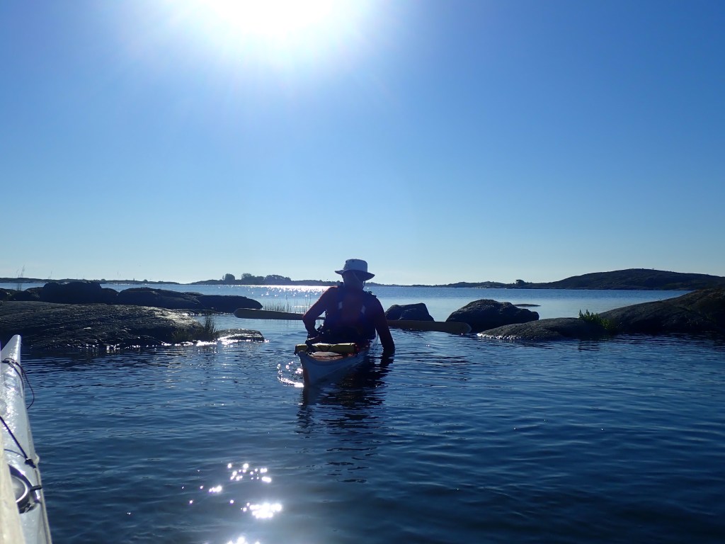 Then is was time for a couple of hours paddling in shielded waters before a new swim plus snack plus sunbathing stop. At this stoo Mikko took out the map and google and checked for possible camp sites. We are definitely in more benign waters, but that also means that there are more cabins. Nowhere near what it would have been with Norwegian policies, but still.