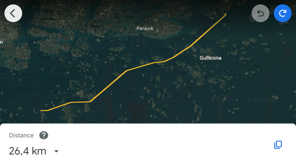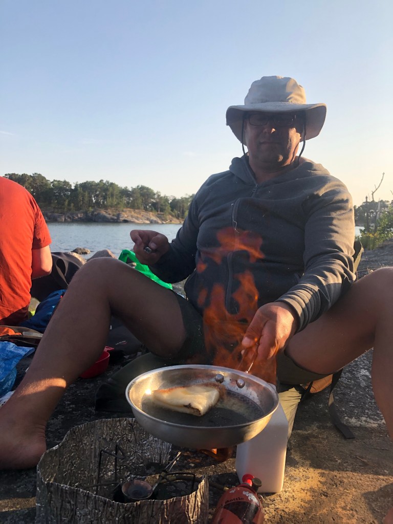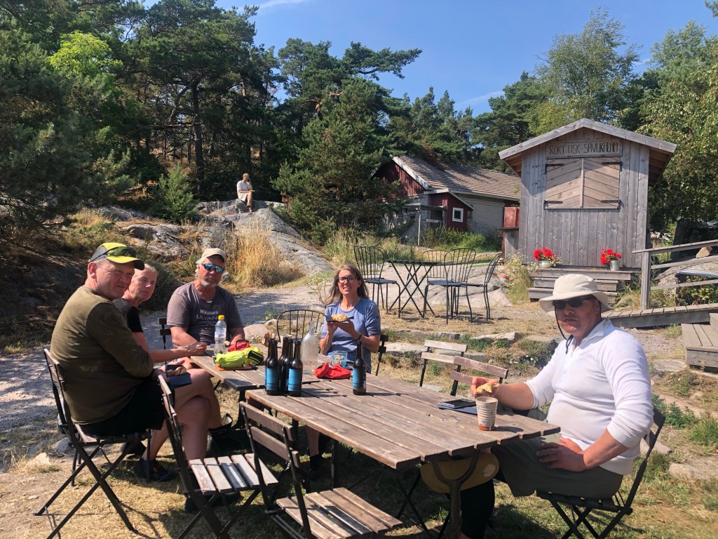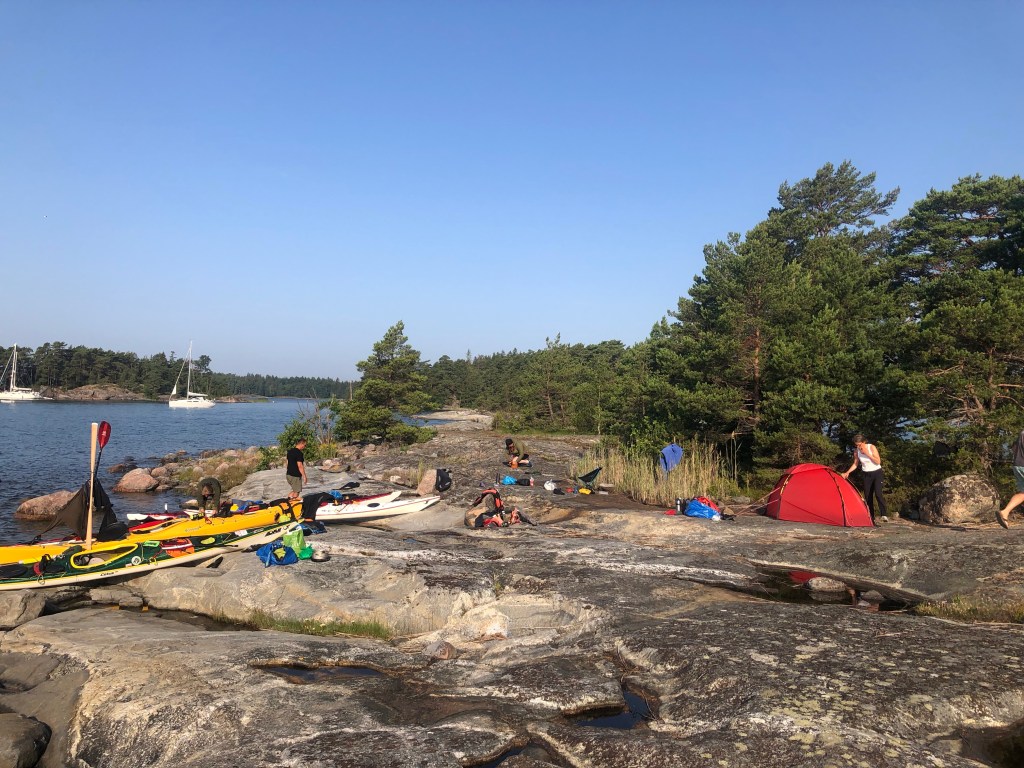 Tomorrow we plan to turn north and first go to a small skerrie where Stein and Erling overnighted in 2018. That will tie the tracks together. Then we’ll look for a campsite a couple of hours paddling south of Turku/Åbo. WP. And the forcast says light winds from the south, so we are hoping for another day of tail winds.