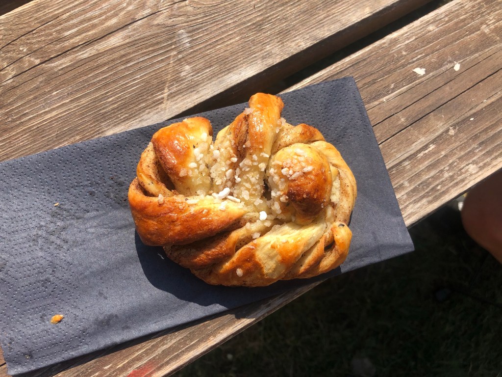 It was really good pizza and we took our time to enjoy. When we were ready to pay and move on it was just after 1500. Turned out that pizza serving stopped at 1500 and “kanelbullar” serving started. Did we still want “kanelbullar”? We did. No point in leaving the job half finished.